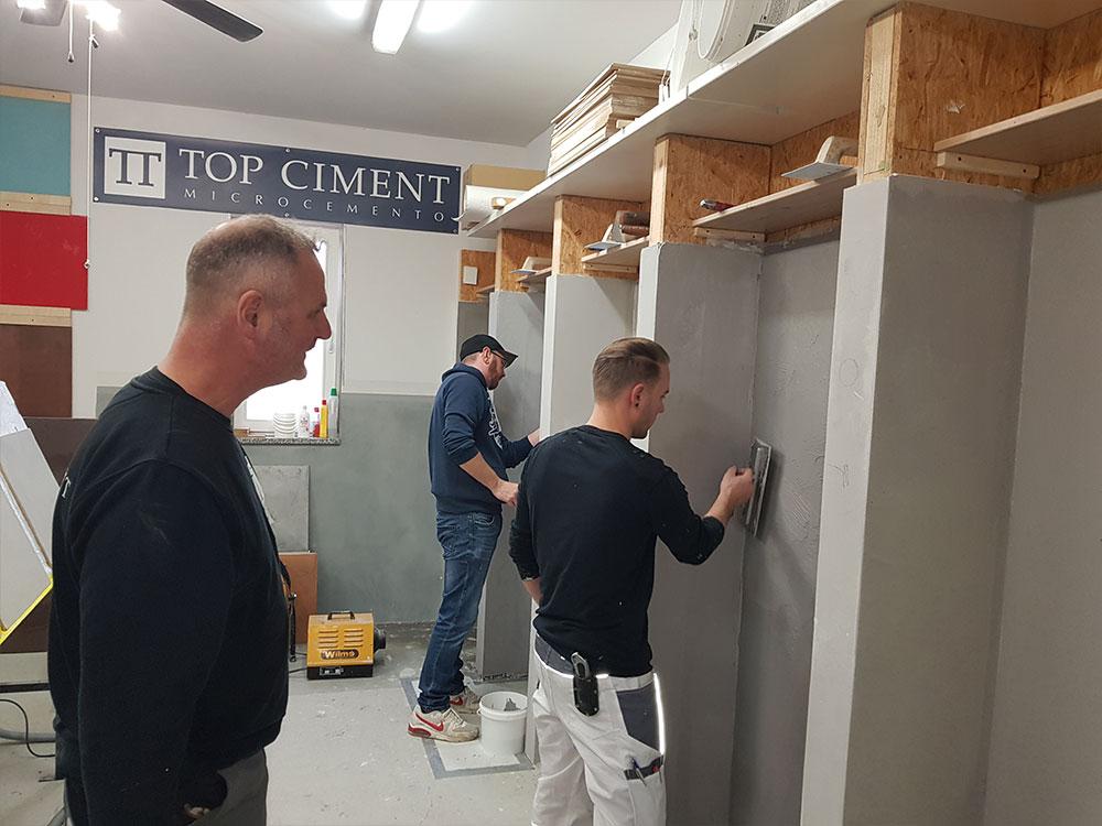 Unsere Reise führte uns ins hessische Pohlheim zu unserem Kollegen Malermeister Markus Knöpper / Terra Lilia GmbH. Auf dem Gebiet der fugenlosen Gestaltung hatten wir solide Vorerfahrungen und um uns darauf aufbauend weiterzuentwickeln, waren wir auf der Suche nach dem besten Produktsystem für diese Einsatzbereiche.
