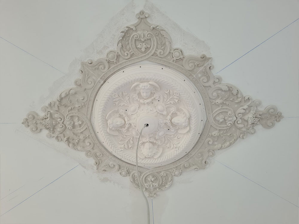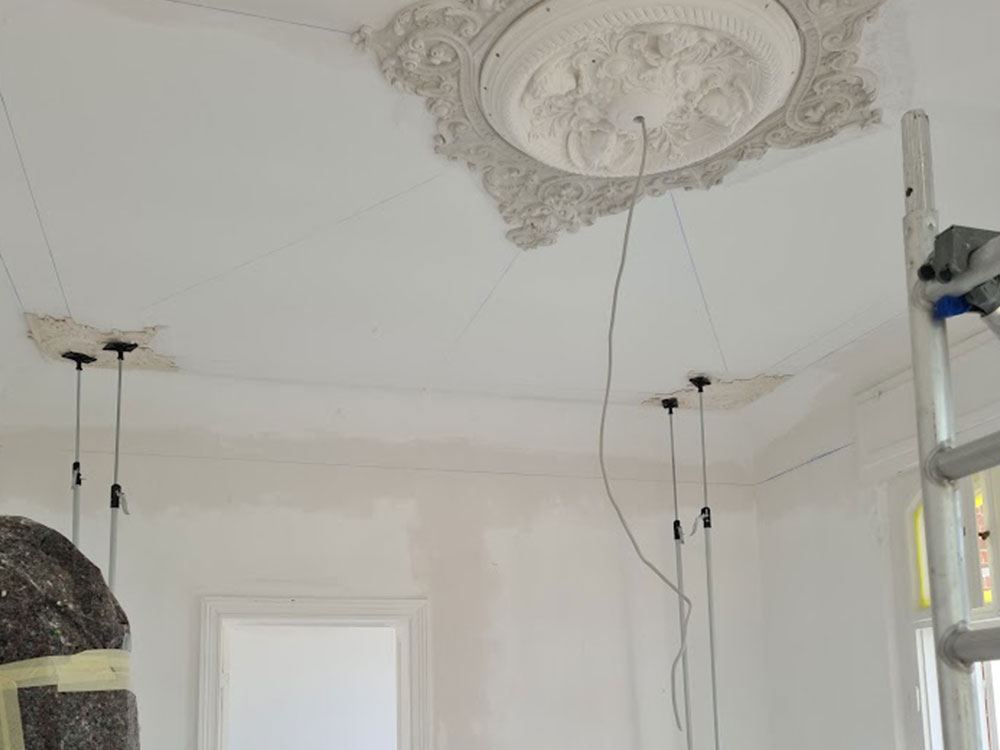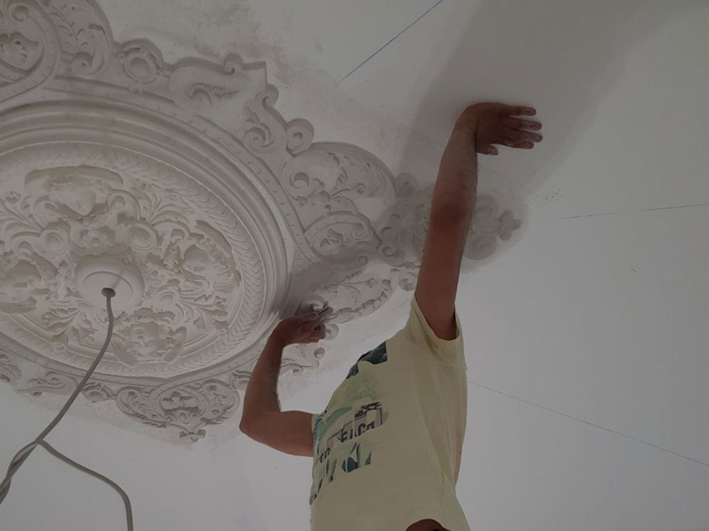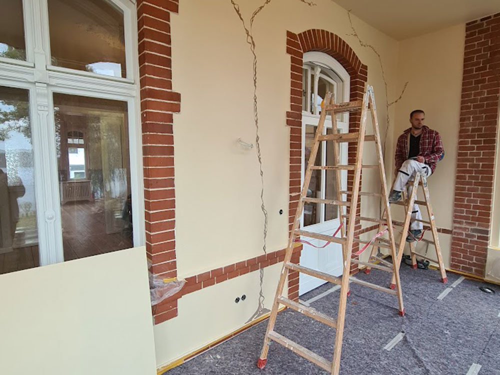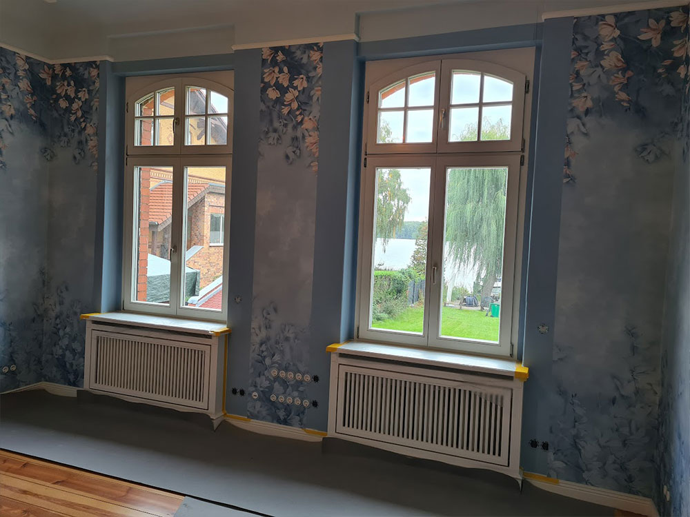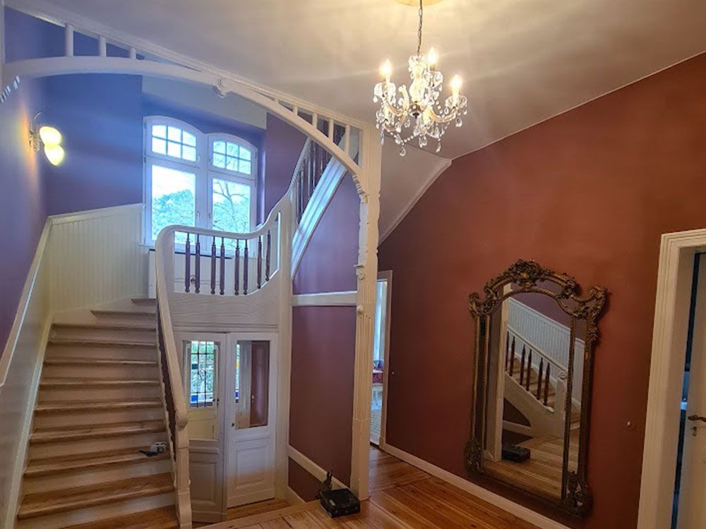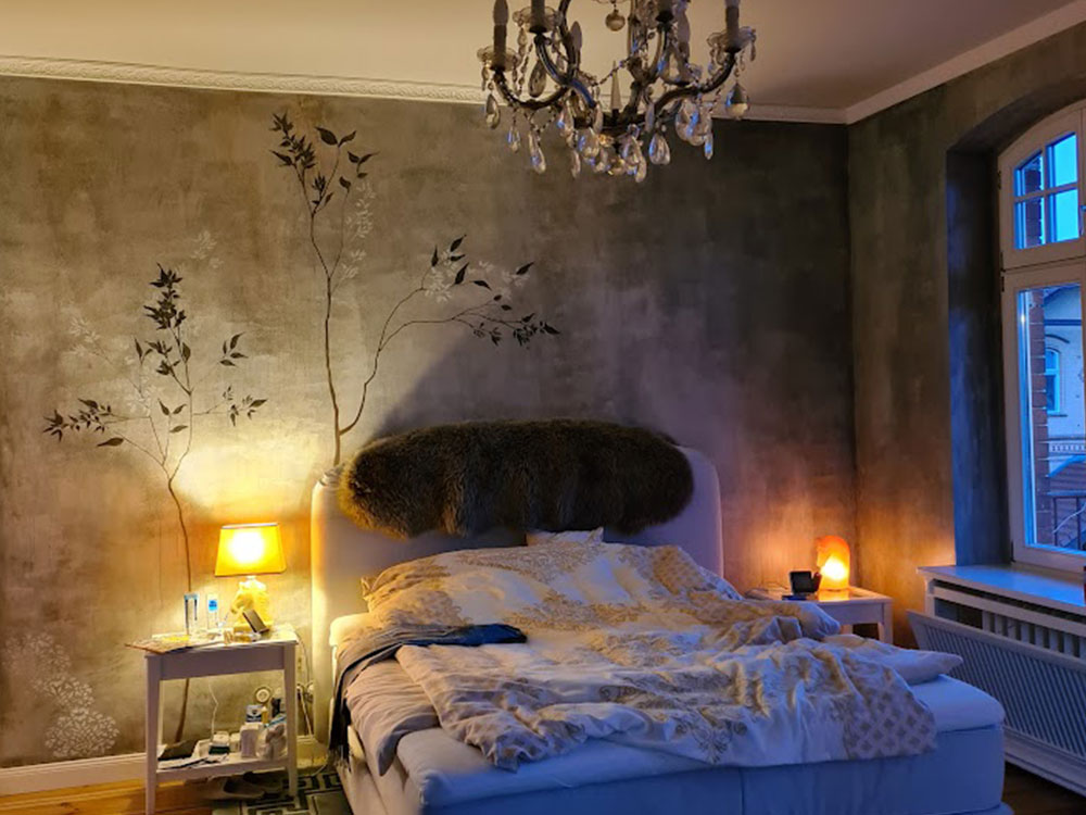 Zuerst angefragt für die Stuckarbeiten konnten wir darüber hinaus auch die Maler-, Lackier-, Tapezier- und Gestaltungsarbeiten umsetzen. Für die Realisierung der vielen Ideen und reichhaltigen Inspirationen unserer Kundin waren umfangreiche Fähigkeiten, organisatorisches Talent und Leidenschaft in der Umsetzung gefragt.
