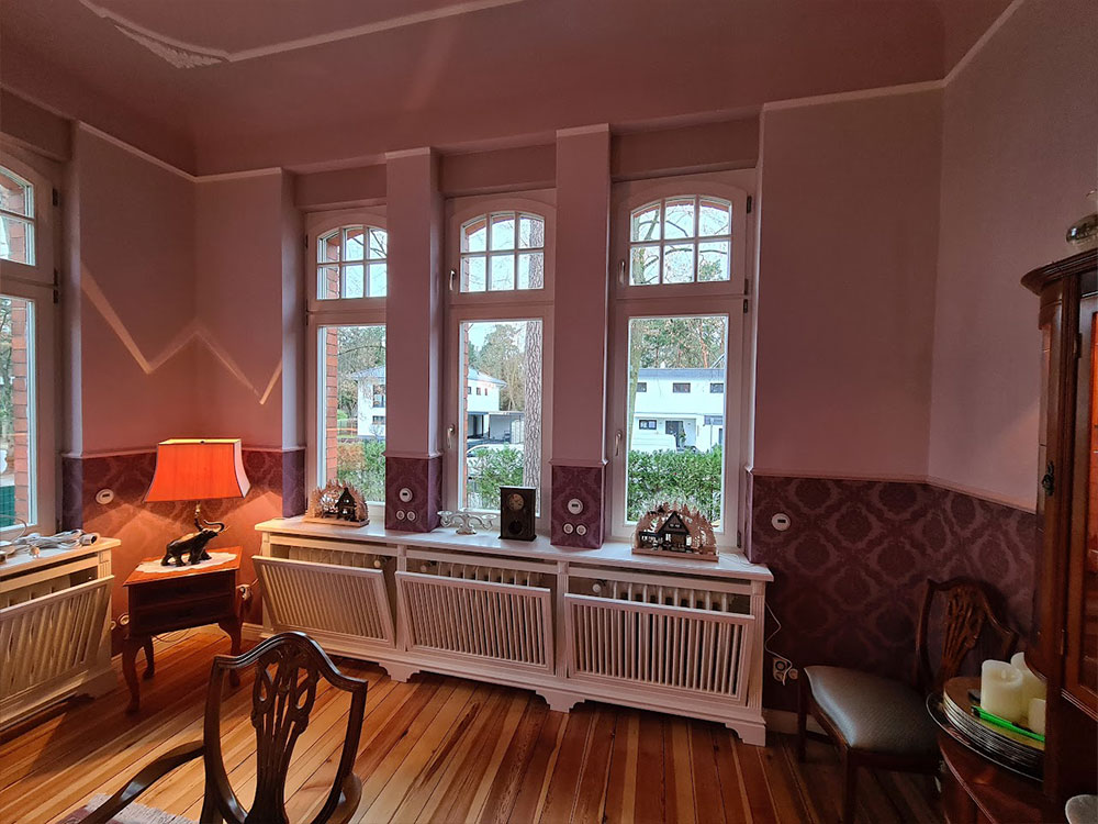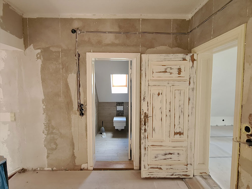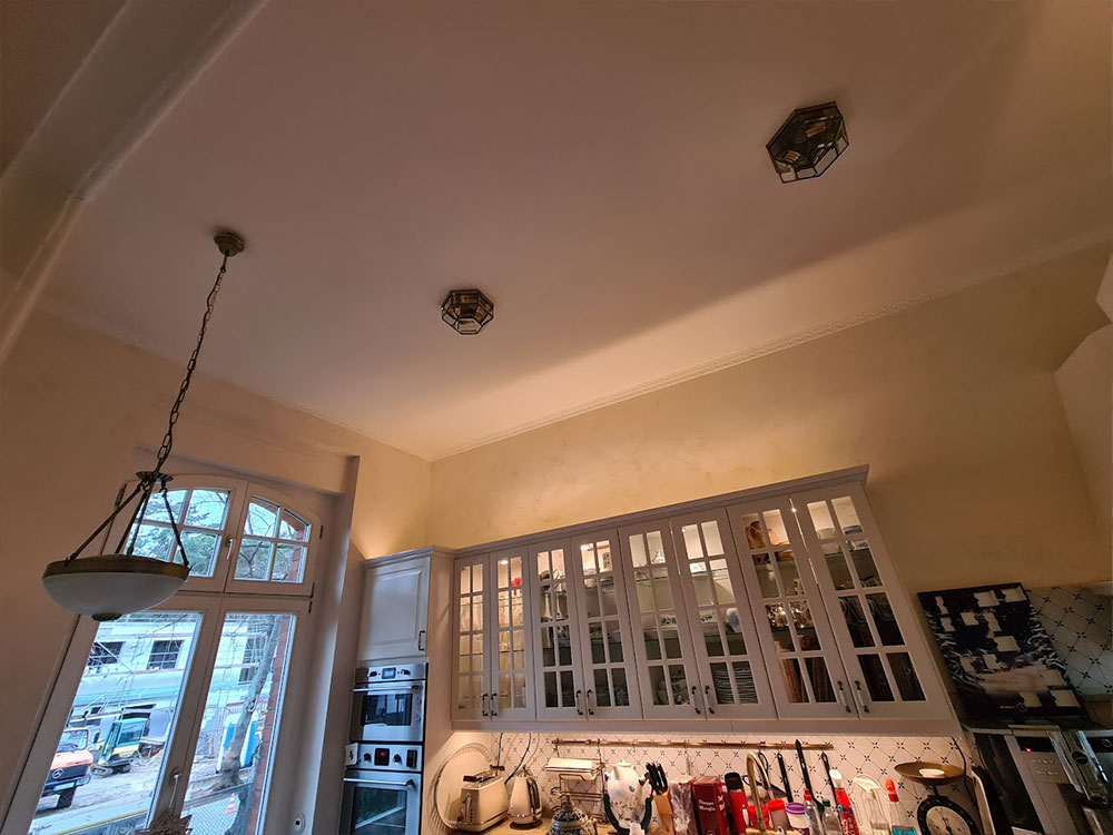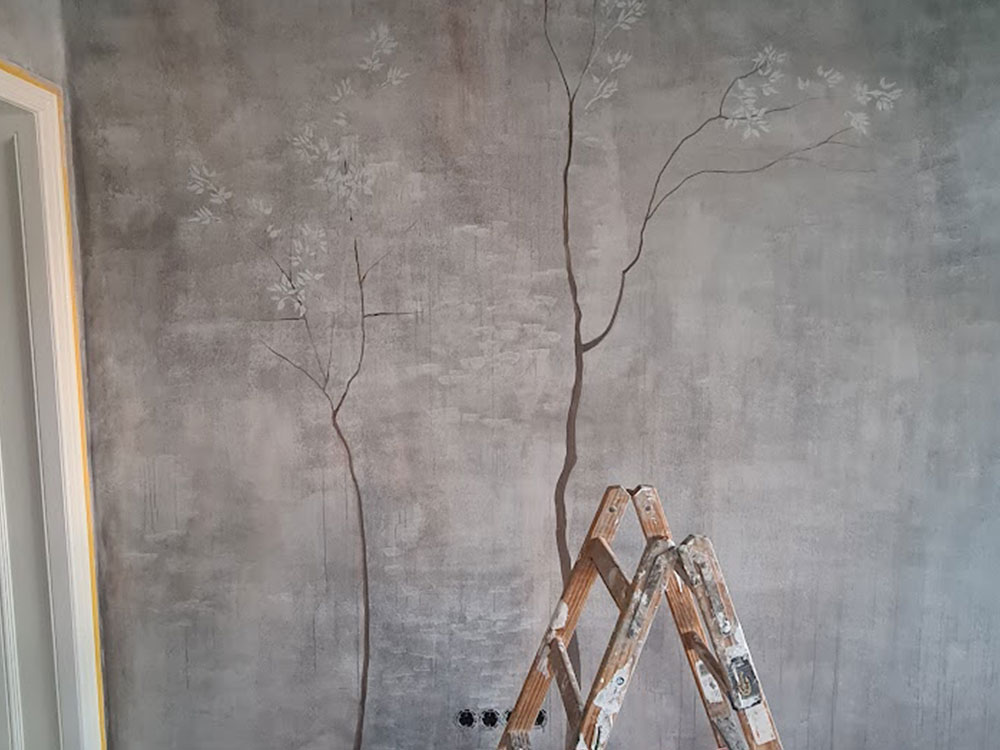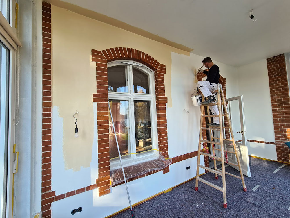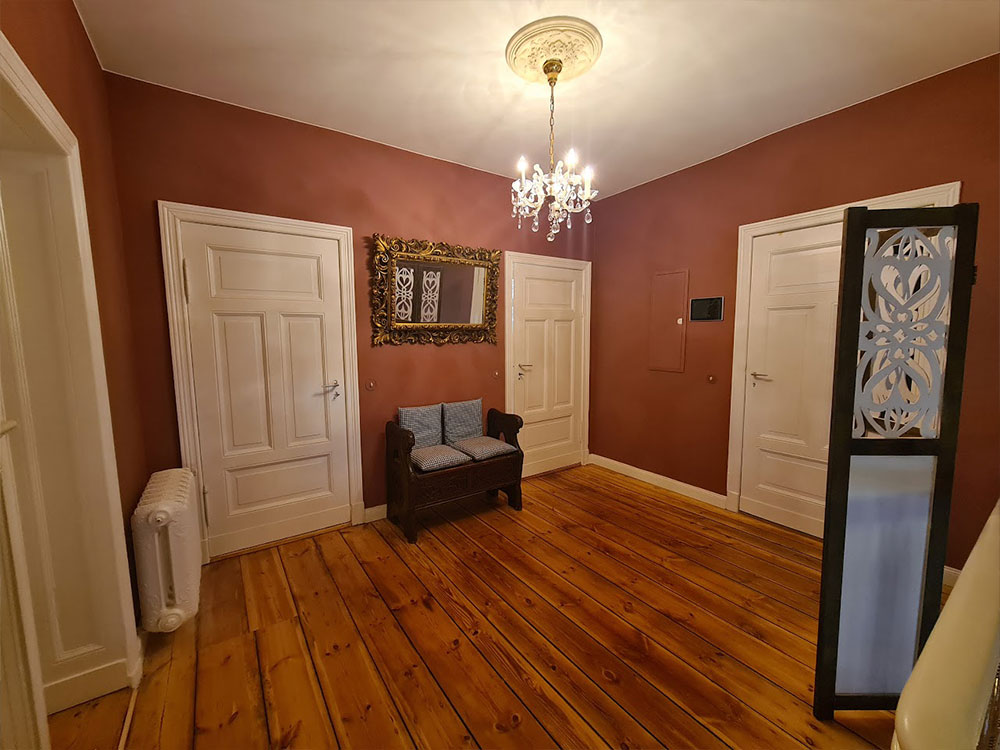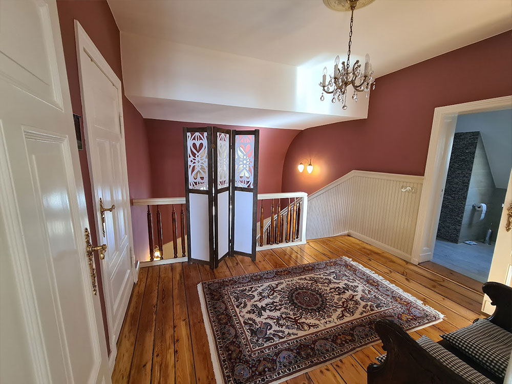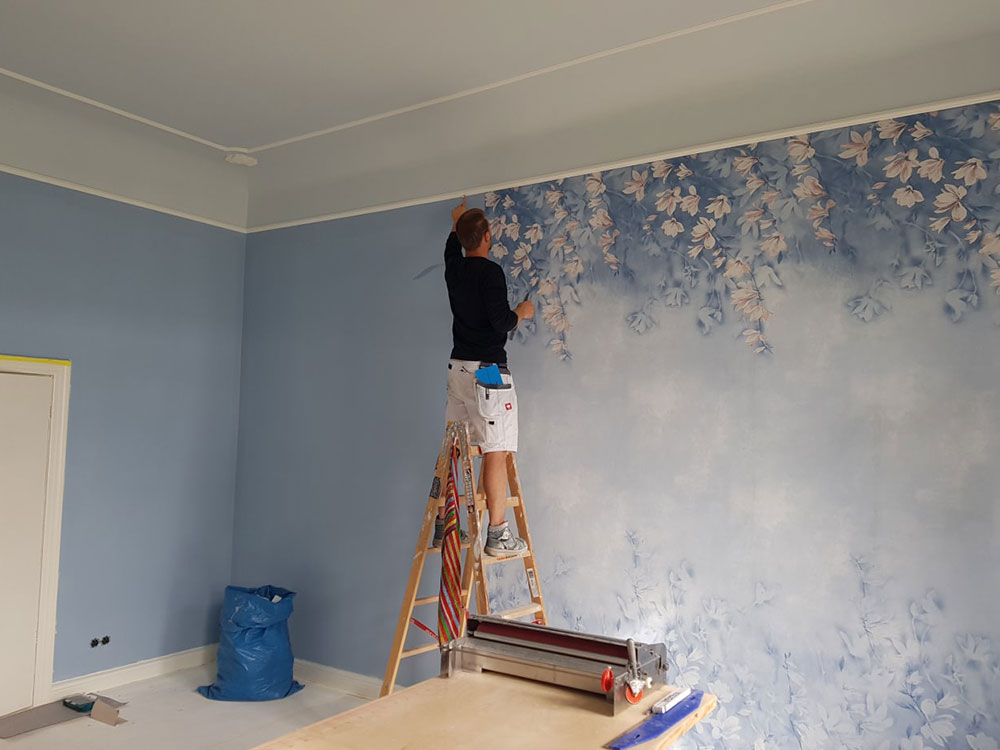 Zuerst angefragt für die Stuckarbeiten konnten wir darüber hinaus auch die Maler-, Lackier-, Tapezier- und Gestaltungsarbeiten umsetzen. Für die Realisierung der vielen Ideen und reichhaltigen Inspirationen unserer Kundin waren umfangreiche Fähigkeiten, organisatorisches Talent und Leidenschaft in der Umsetzung gefragt.