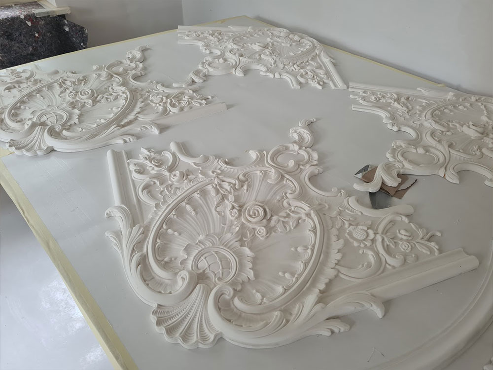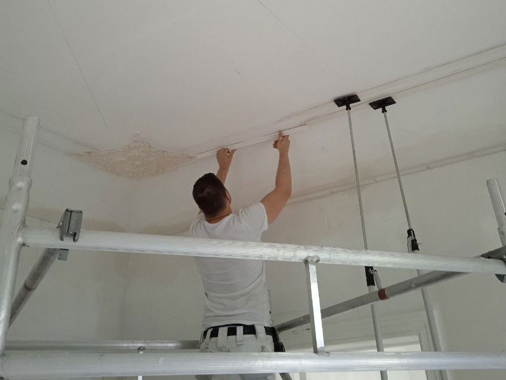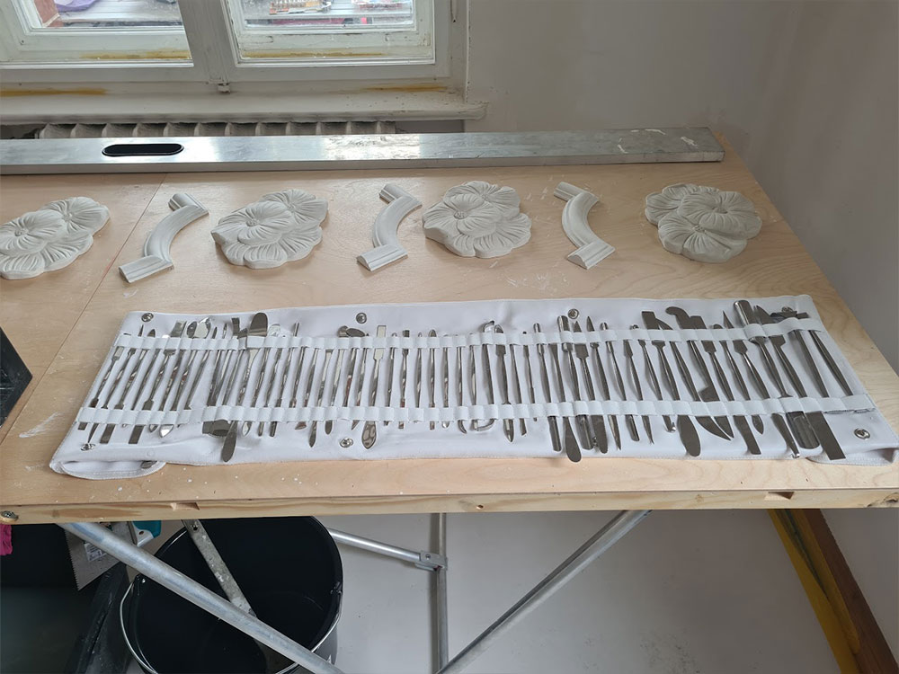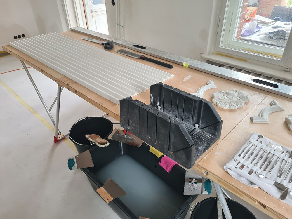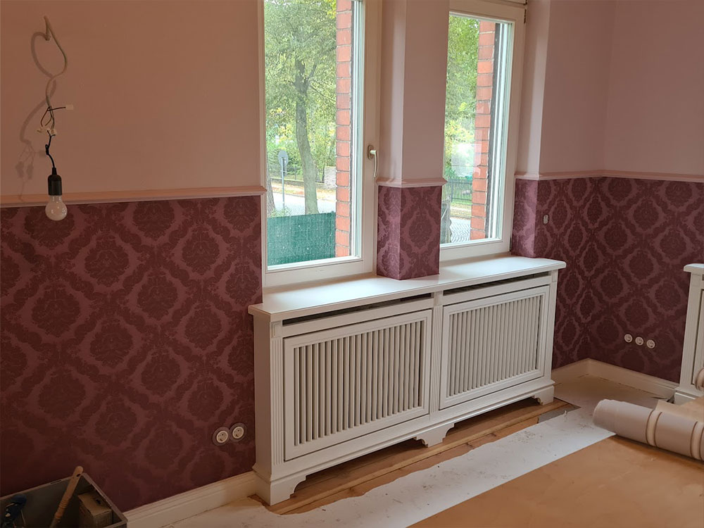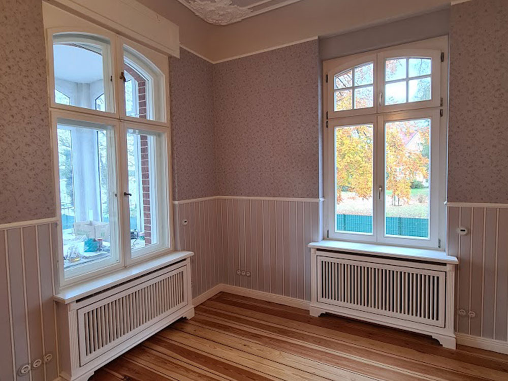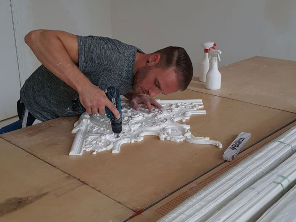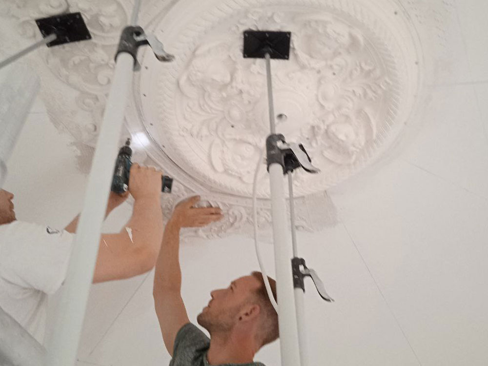 Zuerst angefragt für die Stuckarbeiten konnten wir darüber hinaus auch die Maler-, Lackier-, Tapezier- und Gestaltungsarbeiten umsetzen. Für die Realisierung der vielen Ideen und reichhaltigen Inspirationen unserer Kundin waren umfangreiche Fähigkeiten, organisatorisches Talent und Leidenschaft in der Umsetzung gefragt.