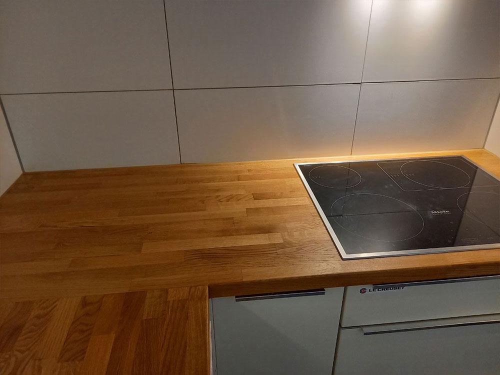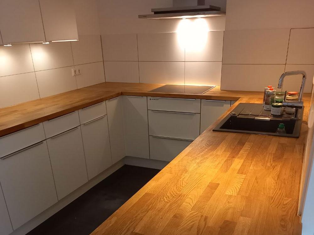 Neue Farbigkeit durch auffrischende Überholungsanstriche, diverse Reparaturen und Instandhaltungen waren gefragt. Gleichzeitig konnten wir den geplanten Austausch der Küchenarbeitsplatte durch eine Aufarbeitung der Oberfläche vermeiden und dadurch Aufwand und Kosten für unseren Kunden einsparen.